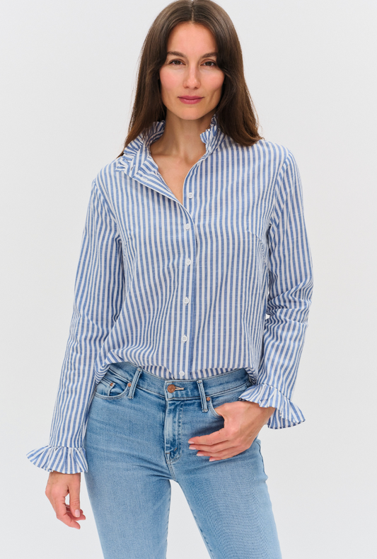 Holland Poplin Striped Ruffle Blouse