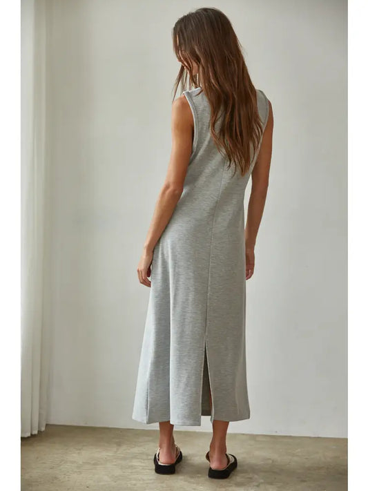 Fisher Knit Ribbed Sleeveless Midi Dress with Back Slit
